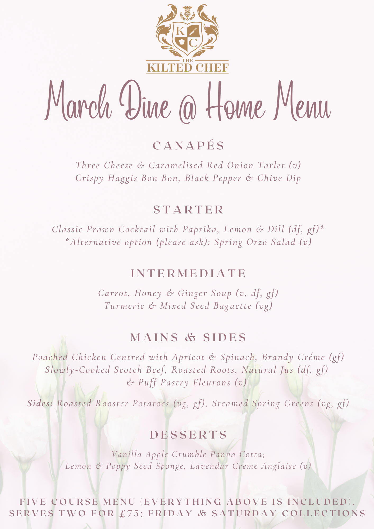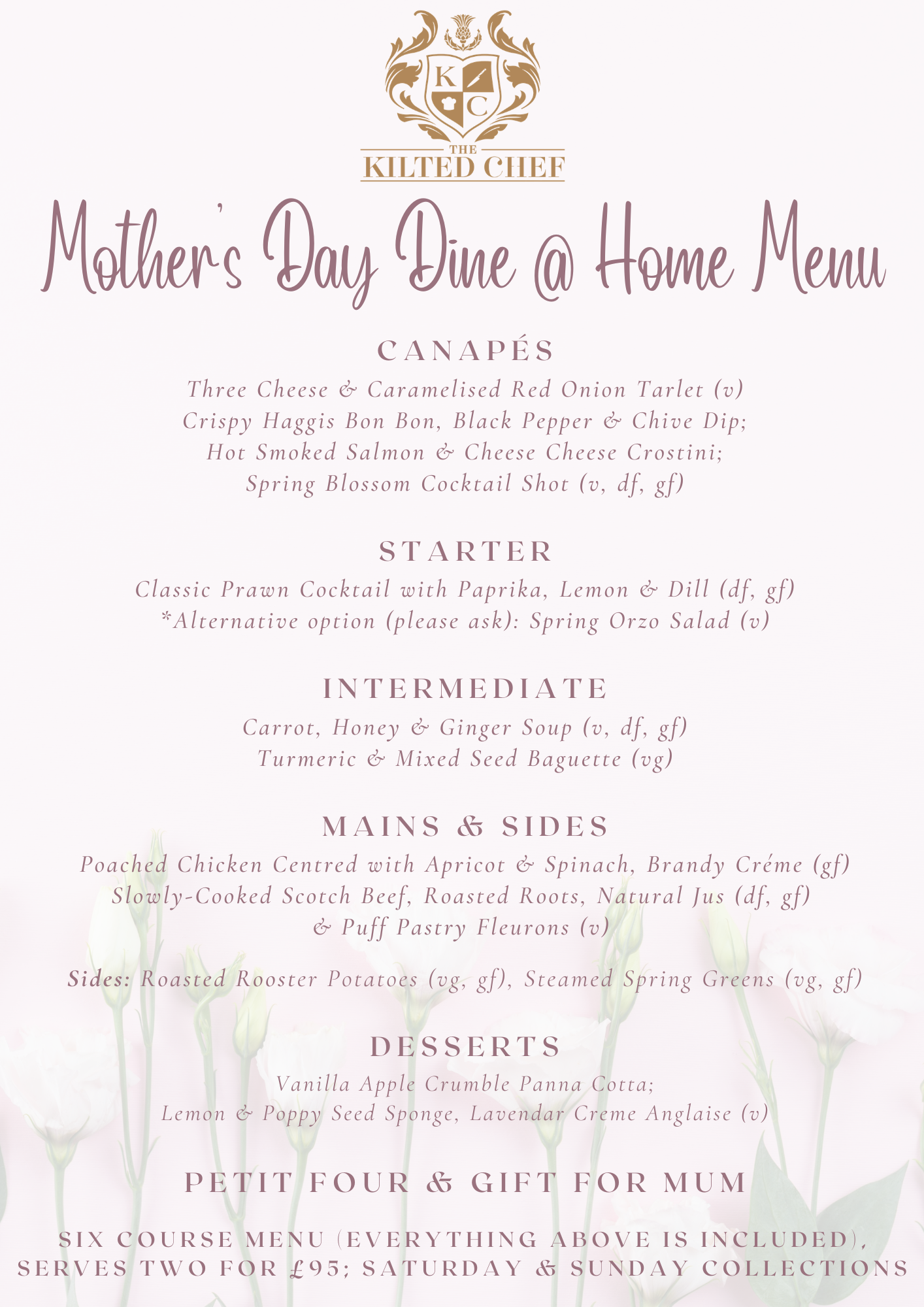 *For Mother’s Day Weekend, we have an enhanced menu package below, available to collect on: Saturday 14th or Sunday 15th March (10am - 12noon).