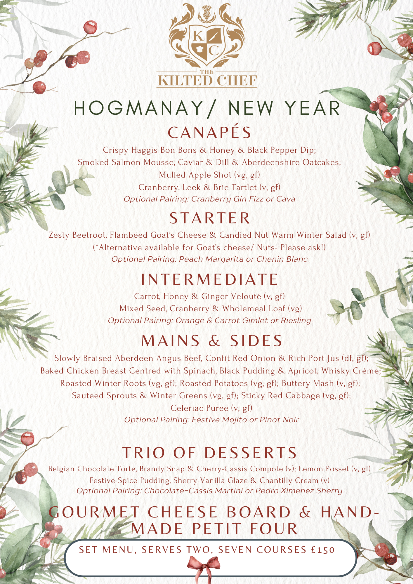 Finally, please note our Christmas Day and Hogmanay/NY menus are slightly different.