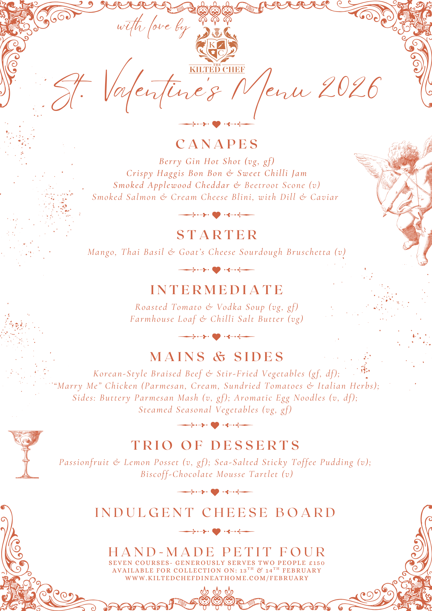 We are delighted to invite you to pre-order our seven course restaurant box with all the little extras you’ve come to expect from us 💝 for collections on Friday 13th (4-6pm) and Saturday 14th February (10-12noon). We have some guidance for you: